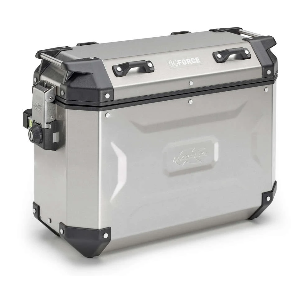 Le nuove valige K’Force rappresentano la naturale evoluzione delle K’Venture. Realizzate in Alluminio con trattamento meccanico per il rivestimento, cerniere di apertura/chiusura in acciaio Inox come anche epr i passacinghia. GLi Angoli della Valigia sono in tecnopolimero rinforzato che oltre a proteggere le estremità delle valige, le donano anche un aspetto decisamente più aggressivo.