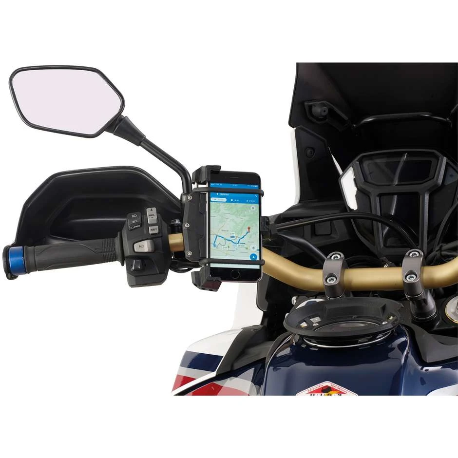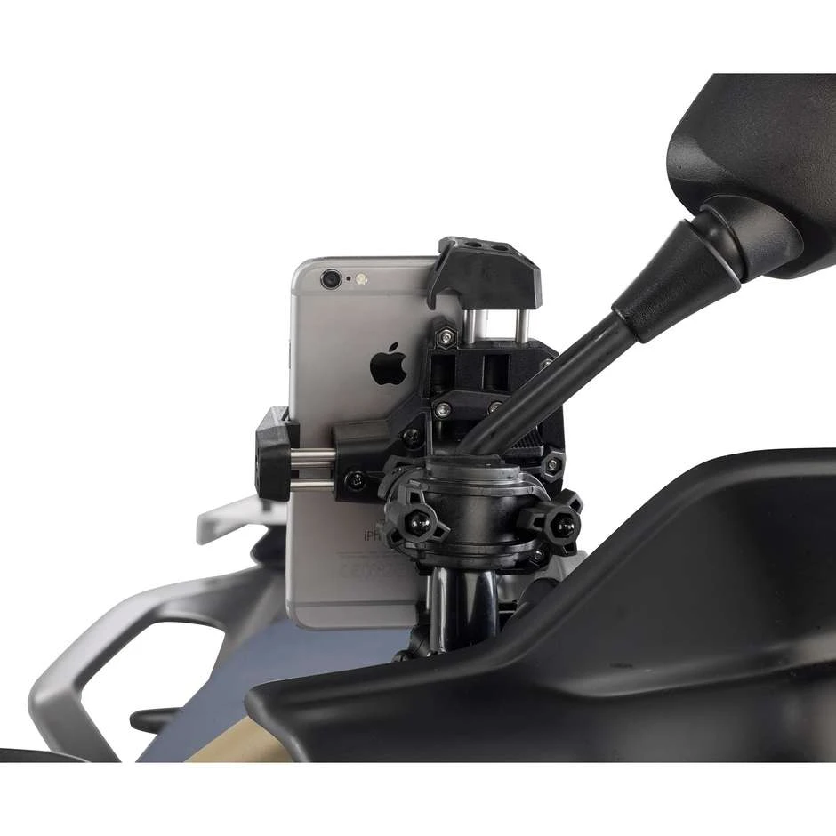 Pinza universale porta smartphone per il fissaggio a moto, scooter, biciclette e quad. Per smartphone con dimensioni esterne: minimo di 112 x 52mm e massimo di 148 x 75mm